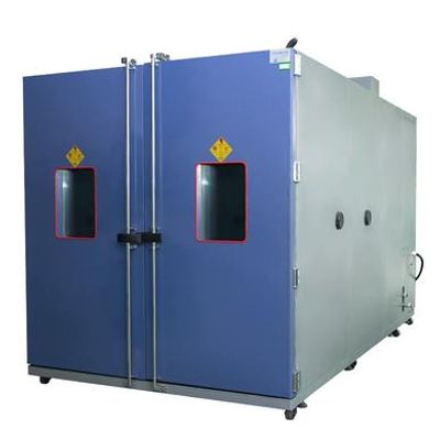 The walk-in environmental test chamber has a control panel, electrical panel, humidity panel blower, heater, humidifier, and freezer. It provides a sizeable spare part for temperature and humidity testing of large parts, semi-finished and finished products. This depends on testing large or more numerous products. Such as computer terminals and vehicle parts.