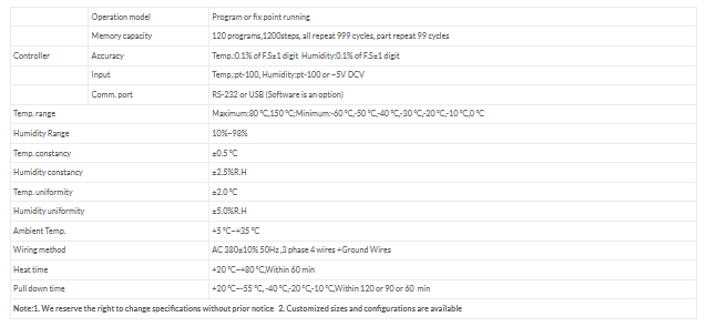 - The temperature and humidity testing chamber has a USB connector and a WAN communication function. It can make the communication equipment and software extensions meet customers’ needs.