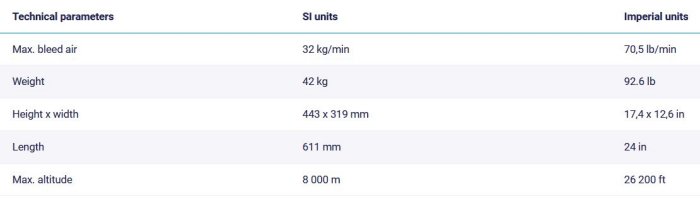 This PBS auxiliary power unit combines high power, small dimensions and light weight, and it also supplies clean air to the environmental control system.
