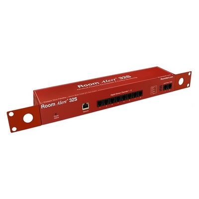 The Room Alert 32S fits 1U of rack space in a server cabinet, but can also hang from a ceiling or on a wall from its rotating rack wings. Perfect for areas requiring comprehensive coverage, this unit is at home in data centers, warehouses and any space requiring eyes on a wide variety of conditions—or on the same condition in multiple targeted locations.