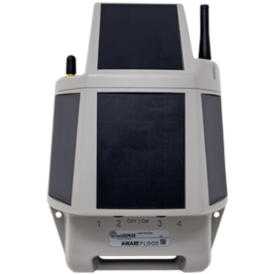 The AWARE Flood System is comprised of a network of sensor nodes, each consisting of an IoT node that is connected to a submersible water level sensor through a 49-foot cable to independently monitor waterway conditions. Data from the entire wireless network can be sent via a direct cellular Internet of Things (IoT) communications link, which is also configurable with two-way Iridium satellite for reliable communication around the world and an alternate form of data transmission.
