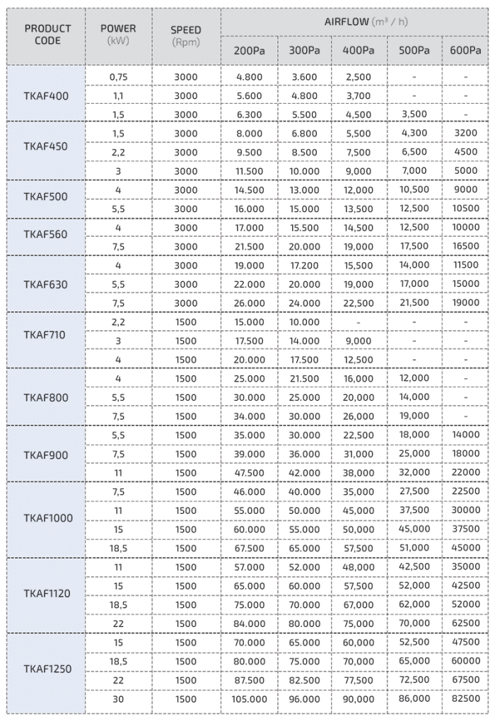 Tezel axial sleeve fresh air Fan series mak. Suitable for operation at 60 °C. With a diameter range of 355 mm – 1250 mm, the series ‘ adjustable wing angle offers a wide range of performance while also providing the desired flow rate precisely. The performance of the axial Hive fresh air fans has been tested in accordance with the AMCA 210-07 standard. Although it is used to provide fresh air to smoke evacuated areas and to pressurize stair hives, it provides the best solution for your basic ventilation needs. Simple exhaust and fresh air meet your needs.