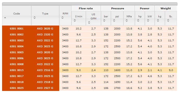All models are with Built-in pressure regulator. Female suction coupling G 1/2 - Delivery coupling M 22 x 1,5. Code: 6501 0002 - 6501 0001 - 6501 0004 - 6501 0003 - 6501 0017. Suction coupling Garden Hose type with filter - Delivery coupling 3/8” NPT. Code: 6501 0015 - 6501 0018 - 6501 0025 - 6501 0005 - 6501 0006 - 6501 0008.