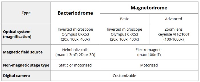 Magneto- and bacteriodrome are devices for microscopic observation of magnetic field influence on magnetic compounds or organisms. They originate from research on magnetotactic bacteria, but find their application in wide variety of fields, such as: medical research, biology or material science.