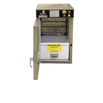 Discrete enough for under-the-counter use, the Tony Team TT100 Bag Compactor is designed and built to meet the most stringent safety, hygiene and environmental standards. It can deliver cost reductions of up to 70%. The TT100 is ideal for tight spaces such as in small commercial kitchens, cafes and on board ships.