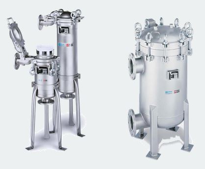 - The liquid flows from the top of the filter house (manufactured in either stainless or epoxy coated carbon steel) and is distributed equally amongst the bags. The liquid comes out at the bottom leaving the dirt behind.