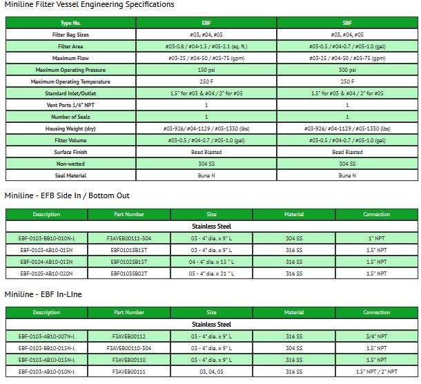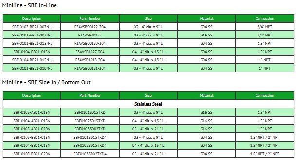 Miniline vessels are designed for self-supported installation. Stainless steel construction means years of reliable, precision filtration with no concern about corrosion problems and at a price that compares favorably to carbon steel. Miniline vessels are available in two different series: EBF for lower pressure applications, and SBF for higher pressure applications.