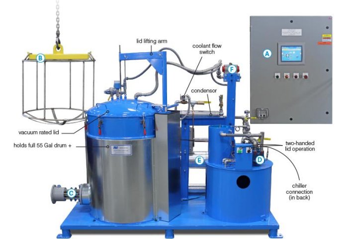 - Optional ChillDown™ active oil cooling system rapidly cools still bottoms, allowing for faster turnaround between cycles.