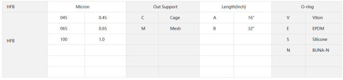 • Part No=HFB+Micron+Out support+Length+O-ring