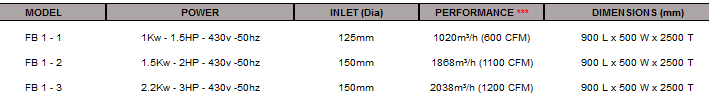 - 600 - 3250 CFM (1020 - 5521m3/h) Air Flow.