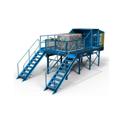 The Bale Breaker consists of an 800 cubic foot feed hopper with a unitized understructure and steel frame support. A drag conveyor with variable-speed drive transfers baled material toward the front end of the unit.  There, three rotating `beater bars` continually impact the bale - breaking it into small clumps and individual bottles.The drag conveyor is powered by a 10-hp gear motor.  Each of the three beater bars are also powered by 10-hp gear motors.  All motors are variable speed to allow for precise adjustment and control.  The unit can be floor mounted or pit mounted.