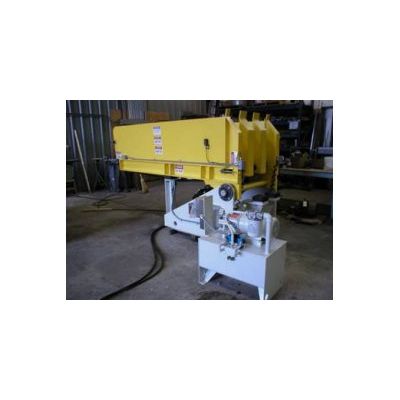 The Downender accepts a bale stack either directly or from the stacked bale storage conveyor. It then rotates it to a horizontal position and conveys it to the next unit. It is hydraulically operated with an integral 5 HP hydraulic power unit and is rotated on a pivot by Parker hydraulic cylinders, operating at 1500 PSI.