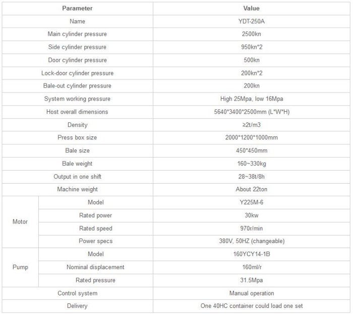 ECOHYDRAULIC - Model YDT-250B -Baling Press Machine