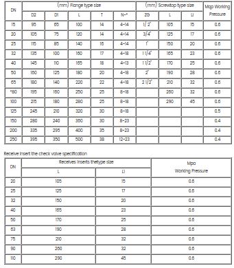 The flange、the screwtop check valve specification.