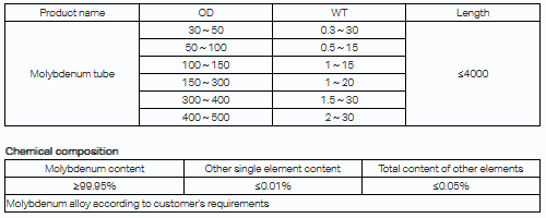 Welding molybdenum tube is mainly used for equipment spare parts which not strict with size. Rolling the molybdenum sheet into a tube, welding in vacuum, then proceed to roundness correction treatment.