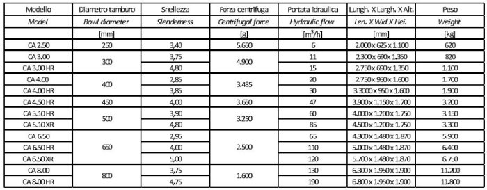 - in case of sudden lack of electricity, the machine automatically reaches the highest differential speed allowing the self-discharging and facilitating the restarting stage