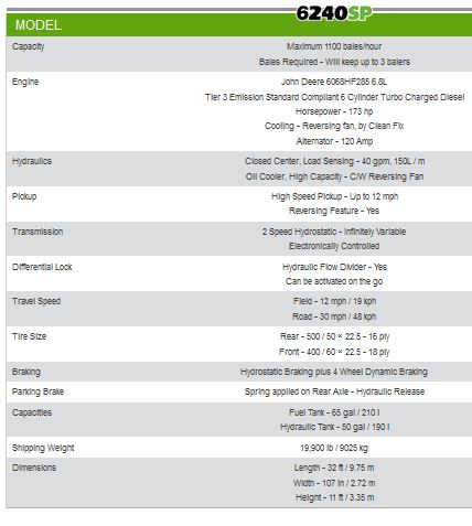 The Bale Baron 6240SP’s power comes from a 6.8L John Deere 6 Cylinder Turbocharged 173 hp emissions compliant Tier 3 diesel engine, known for its unparalleled durability.