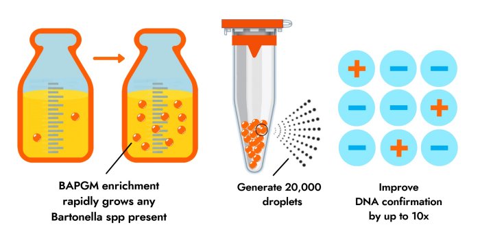 The most sensitive test method available for confirmation of Bartonella species infections. Bartonella Digital ePCR™ combines two sample enrichment technologies that are necessary for minimizing the risk of false negative results.