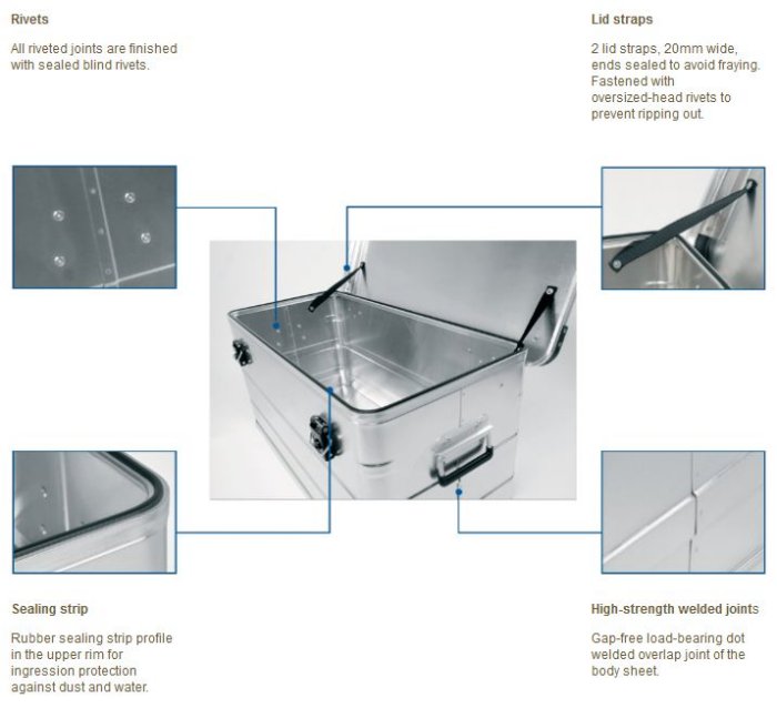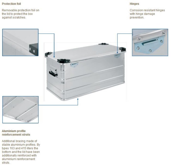 - Quality, endurable aluminium box. 1.0 mm aluminium sheet material on all sizes, strength and durability by design.