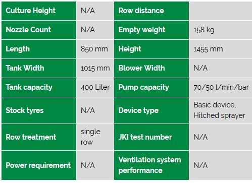 Hans-Wanner - Model G400PE -Basic Hitched Sprayer
