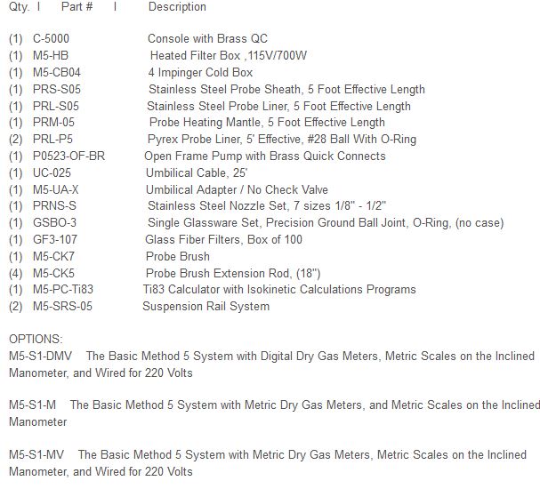 The M5-S1 Method 5 Basic Isokinetic sampling system provides every essential piece of apparatus needed to perform Method 5 runs. (click image to enlarge)