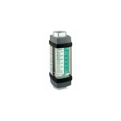 Basic Flow Meter: Flow ranges: 0.02 - 0.2 GPM (0.1 - 0.75 LPM) up to 20 - 300 GPM (100 - 1100 LPM). Construction: Aluminum, brass and T303 stainless steel. Sizes: 1/4 to 3 inch ports. Ports: SAE, NPTF, BSPP, Code 61 and Code 62, 4-bolt flanged. Pressure up to 6,000 psi (414 bar) maximum. Temperature up to 240 °F (116 °C). Accuracy ±2% full scale. Repeatability ±1%. Standard calibration: 1.0 specific gravity for water-based emulsions. Direct reading. Install in any position. 360° rotatable guard/scale. Easier to read linear scale. No flow straighteners or special piping required. Relatively insensitive to shock and vibration. Good viscosity stability (40 to 500 SUS / 4.2 to 108 cSt). Consult factory for other viscosities.