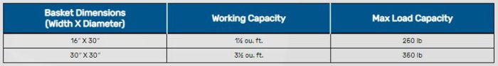 - Heavy-Duty, Coated Tumbling Basket: Available in different mesh sizes and in 1½ cu. ft.