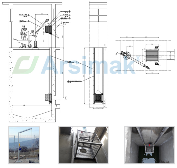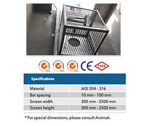 Arsimak offers two operation types for basket screens, , manual and electric lifting devices hoist. On the other hand, these basket screens can be manufactured from perforated plates or screen bars.