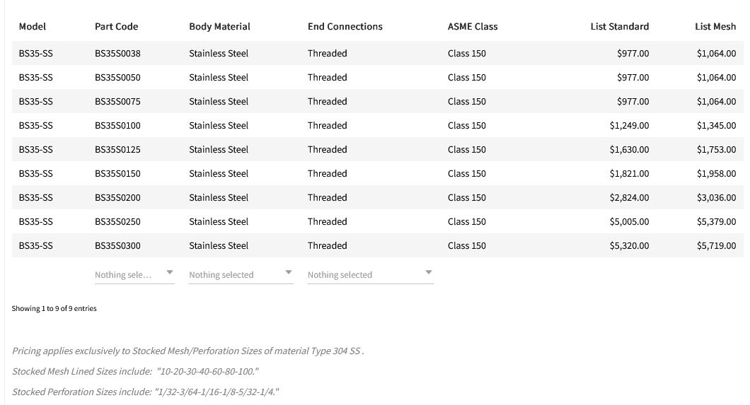 • Body Material: Stainless Steel (A351 Gr. CF8M)