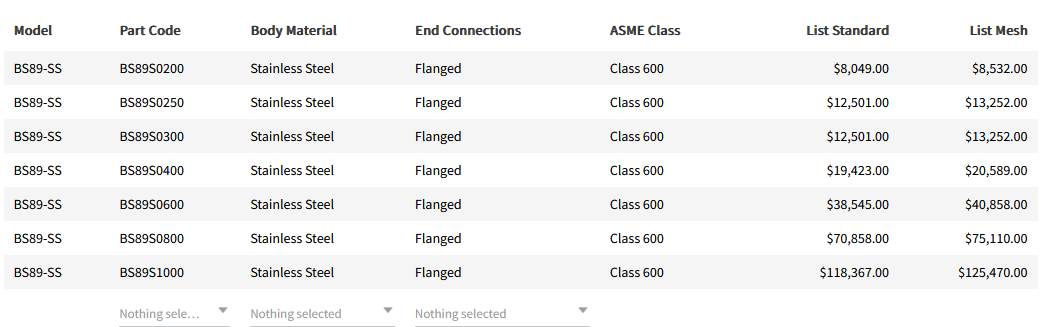 - Body Material: Stainless Steel (A351 Gr. CF8M)