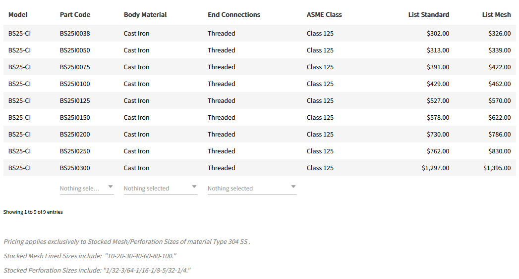 - Cast Iron - ASTM A126 GR. B - CLASS 125