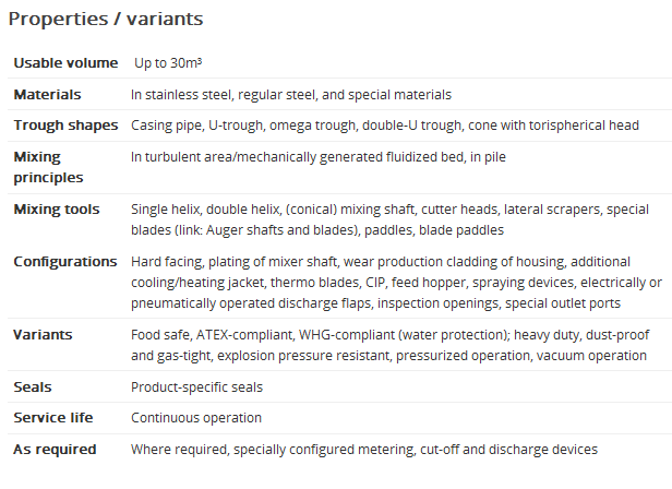 In the case of frequent product and formulation changes as well as variable processes, batch mixers or discontinuous mixers are used. They are suitable e.g. for gentle homogenization and in general for the pre-processing of solid mixtures, solid-liquid, and paste-like mixtures. They are also used for sterilization, breaking up agglomerates, pelletilization, initiating chemical reactions, and metering during product manufacturing.