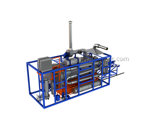 - Vapour and gas mix from pyrolysis chamber is fed to the condensation system through gas filter.