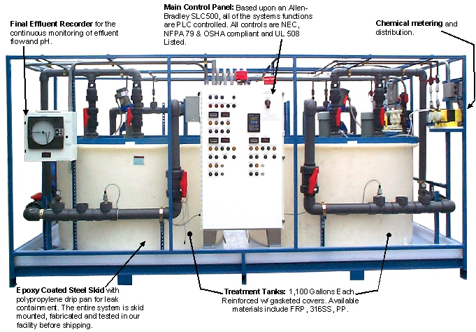 All of our pH adjustment systems are supplied as complete "turnkey" packages. Prior to shipping all plumbing and electrical connections are complete and the pH neutralization system undergoes extensive burn in testing in our QC area including a wet / hydro test.