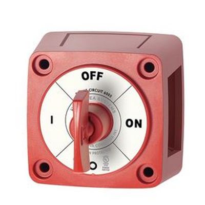 Blue Sea Systems’ m-Series Battery Switch, available in four practical models, is a great choice for most boaters. Its “mini” size, flexible mounting options, and current-carrying capacity make this battery switch a wise choice. The m-Series switch is versatile enough to meet just about any battery switch application for small and medium-size boats. It is very compact, measuring less than 3″ by 3″ (7.6cm X 7.6cm), making it ideal for installations where there are size and space constraints. In spite of its size, its current-carrying capacity exceeds many standard-size switches.
