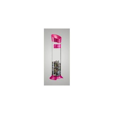 Material; Transparent plexiglass, and Plastic Top and Base. Features; Cylinder Shaped, Battery tubes, with top hole. Assembled Lid and Base. Use Waste batteries and WEEE Recycling.