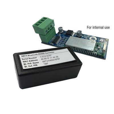 BAYKON model BBT4 is a long range class 1, Bluetooth® 2.1 / RS232 Serial module. BBT4 is a highly integrated and sophisticated Bluetooth® module, containing all the necessary elements from Bluetooth® radio and a fully implemented protocol stack. Therefore BBT4 provides an ideal solution for developers who want to integrate Bluetooth® wireless technology into their design with limited knowledge of Bluetooth® and RF technologies. BBT4 is optimized for long range applications is available with an integrated chip antenna, an RF pin for a custom on-board antenna or optional external 2dBi dipole antenna.