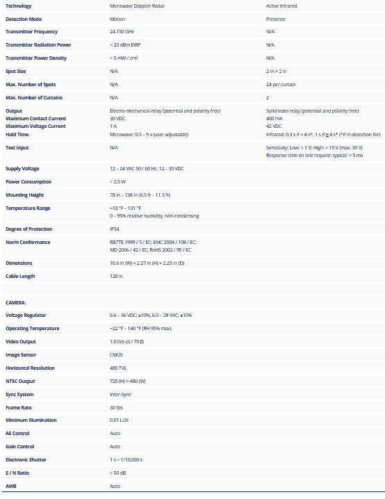 Ten microwave activation sensitivity settings and three infrared safety immunity settings; Ability to distinguish between approaching and departing traffic