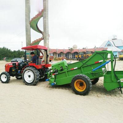 Beach Cleaner can work quickly on the beach with a tractor generally powered for 50-90-hoesepower. The spline-mounted pump enables the beach cleaner to sift all kinds of waste and offshore floater. And the waste is collected into the collecting tank controlled by hydraulic drive and then can be tipped directly onto a truck. Finally ,the machine can aerate and compress the sand.