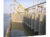One or more inclined bar racks are installed side-by-side (15° incline) at the plant inlet. On deck, a gantry rail supported by a set of vertical posts, follows the edge of the deck. The carrying trolley runs on the gantry rail. It is fed by a festoon cable system which also runs on the gantry rail. The rake has three cable drums: two to lower and lift the rake, one to open and dose the trash collector. When the rake is started, it travels down and along the bar racks, the rake itself having engaged the bars. Debris are removed and stored in the trash collector. When reaching the bottom, the trash collector closes, travel is reversed and the debris brought up above deck. The rake assembly then travels along the rail to the side discharge point where the collector opens and drops the debris (on deck or in a container). The rake is designed to clean each bar rack pass in turn or the specific line number, under head-loss.