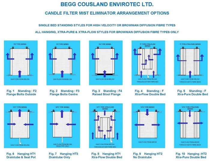 The continuing development of Becofil Candle Filters coupled with the experience gained from hundreds of applications worldwide, enables Begg Cousland to offer a range of filters to conform to the varying requirements of industry in terms of capacity, pressure loss and mist removal efficiency.
