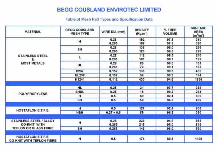 The Becofoil knitted wire mesh demister pads are virtually maintenance free and have been specially designed to achieve highly efficiency removal – up to 100% on entrained droplets above 5 microns in size -while generating low pressure losses.