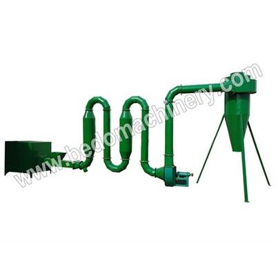 Wet materials are put into the hopper. The fuel boiler generates hot air which mixes with wet materials and then is sucked into the pipes by the exhaust blower (fan) quickly. And then hot air is flowing and going though the curving pipes and buffer (drying chamber) of dryer, thus wet materials is finished to dry, and the dried materials are discharged from the outlet with air lock. This airflow dryer can reduce the moisture to 8~12% with the advantages of low cost consumption and high efficiency.