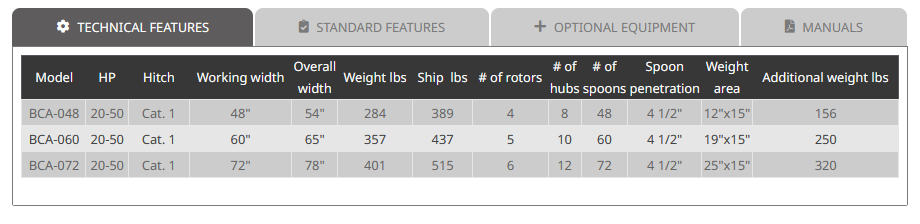 Befco - Model 20-70 HP (15-52 KW) Cat. 1 & 2 -Core Aerators