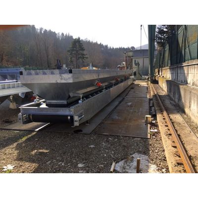 Belt conveyors for transportation of aggregates or granuls/pellets, can be realized in various widths and lengths, with output capacity from 80-100 m³/h up to 1000 m³/h. Belt conveyors, where required, are supplied together with support structure, protection mesh and other devices to guarantee the maximum safety for the operator.