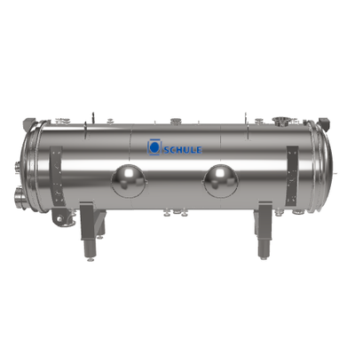 In the belt cooker which is shut-off by a feeding and discharge device, the product can be variably treated with steam under overpressure. The product to be treated is fed through the inlet onto a horizontal conveying belt which transports it through the cooker (autoclave) to the discharge device. This ensures particularly gentle treatment of sensitive products. Classical applications of the SCHULE belt cooker include the production of bulgur and instant rice, but it is also used for germ reduction.