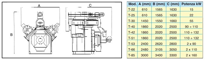 Versatile and easy-to-use pellet press suitable for pelletizing fodder, fertilizers and small size products. Models with one or two motors, with annular die (inside diameter variable from 220 to 850 mm) and V-belt drive.