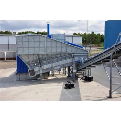 The belt feeder is designed to evenly feed both large and medium sized products into your process. The feeding is done through a metal plate belt, which enables the feeding of heavy pieces. The gear motors are driven by frequency convertors allowing a broad range of speed control.