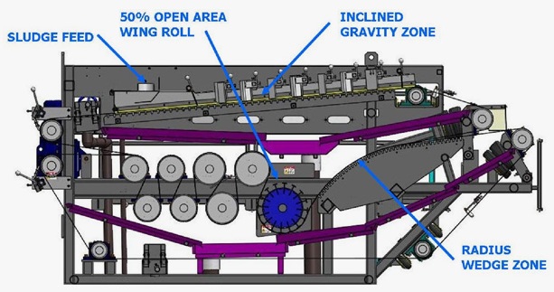 There are three process zones to a belt filter press, the gravity zone, wedge zone and high/pressure/shear zone.