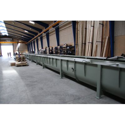 Screw conveyor Ø800x180.000 mm. Screw conveyor 180 m long with 30 intermediate bearings. Flights in Duplex steel (1.4462) and housing in carbon steel with stainless steel wear plates.